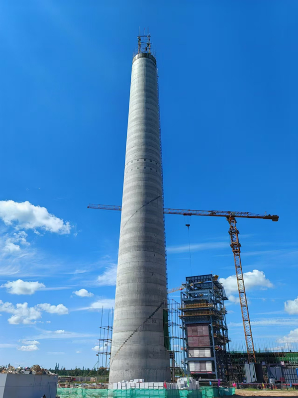 庫倫鑫城煙囪新建項(xiàng)目今日高度72.77m